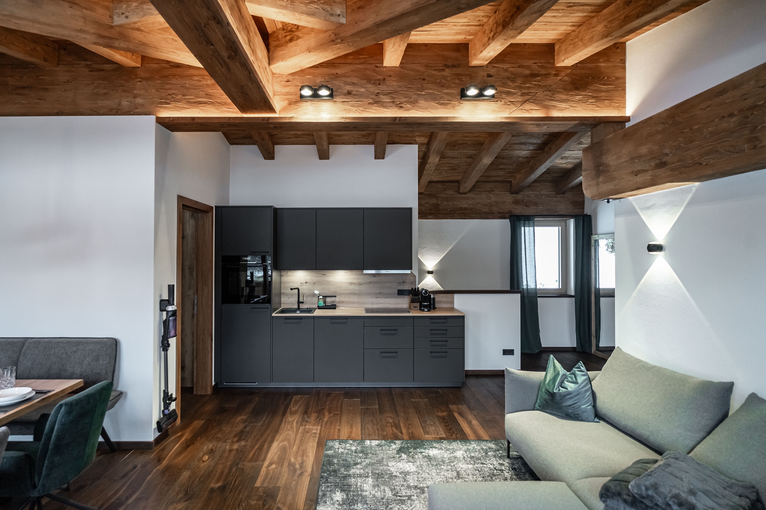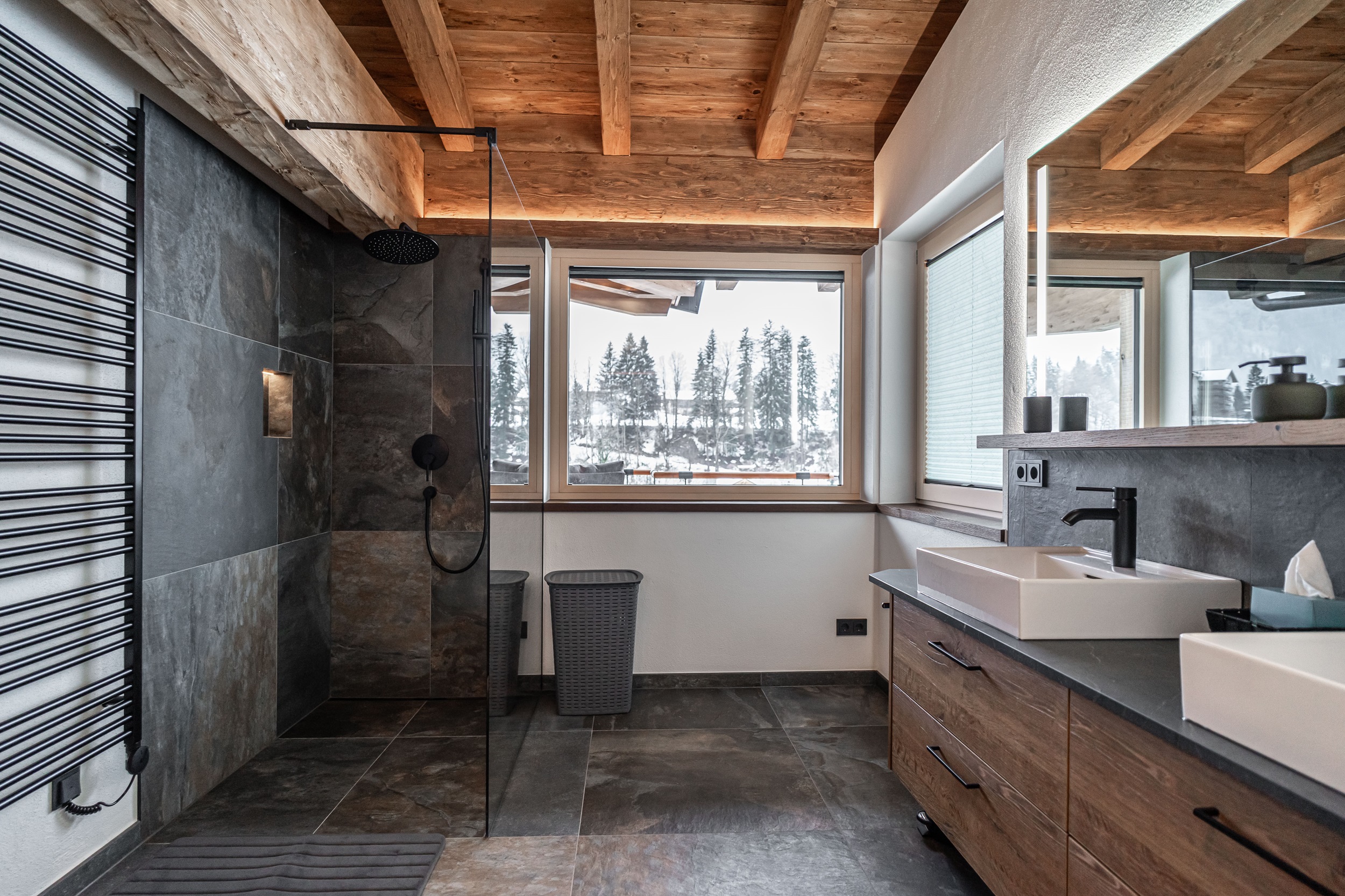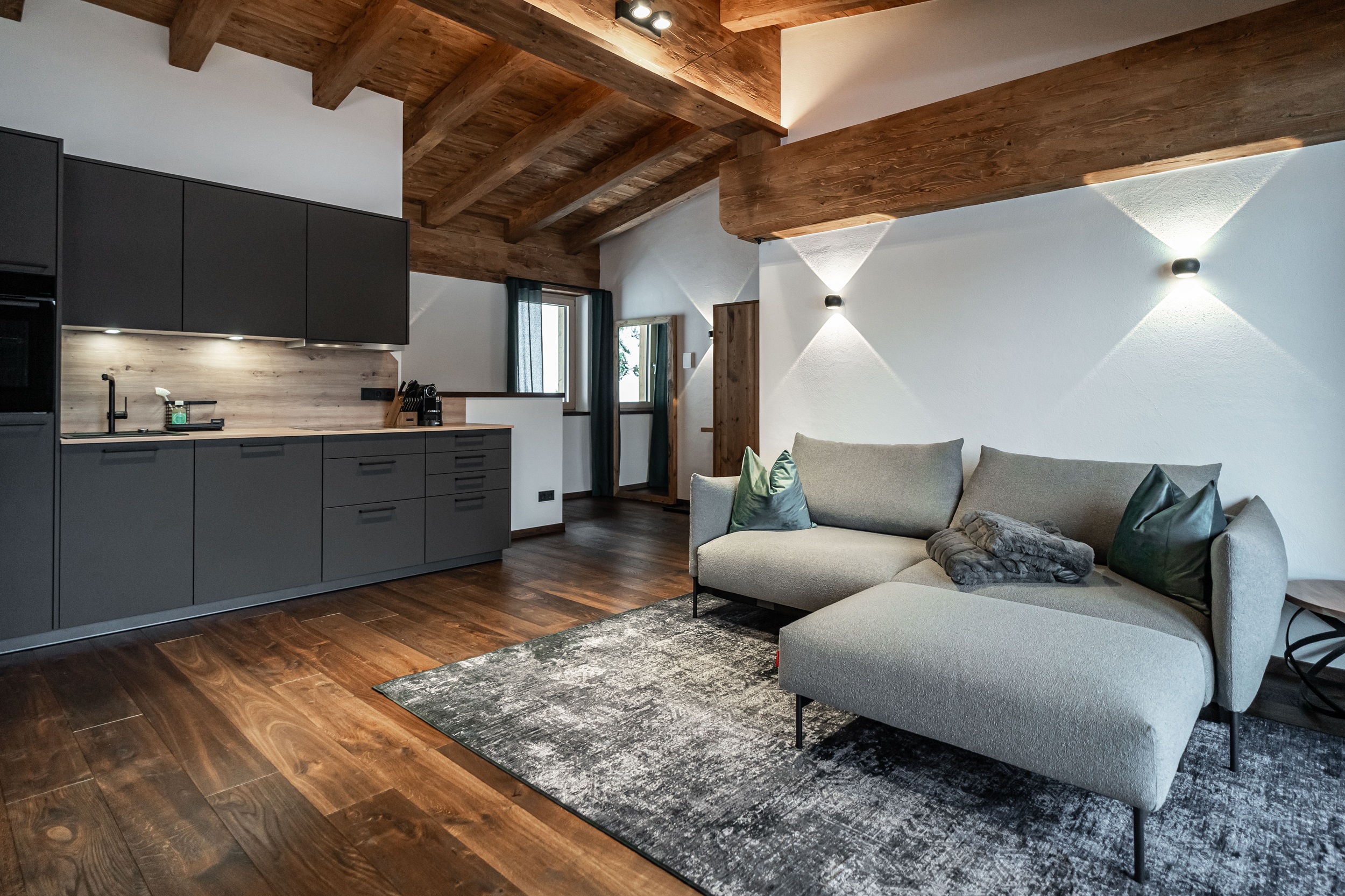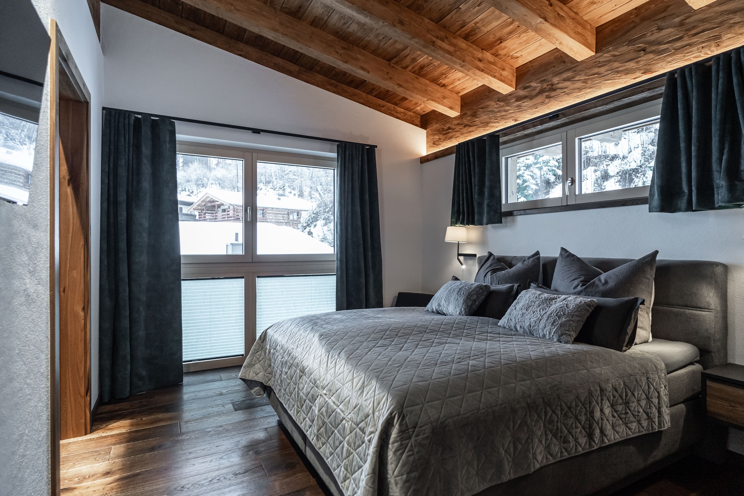 In unserer erstklassigen Panorama-luxe Ferienwohnung im zweiten Stock im Dachgeschoss mit Sichtdachstuhl erwartet Sie ein atemberaubender Panoramablick, den Sie vor allem von der privaten Balkon-Sauna aus genießen können. Die großzügige Urlaubsunterkunft erstreckt sich über 58 m² und bietet ausreichend Raum für eine erholsame Auszeit in Fieberbrunn in den Kitzbüheler Alpen. Das Schlafzimmer verfügt über ein gemütliches Boxspringbett und einen Fernseher. Im Badezimmer finden Sie ein WC, eine Regendusche, einen Handtuchtrockner und einen Föhn vor. Wir stellen Ihnen außerdem Handtücher, Bettwäsche, Seife, Toilettenpapier und weitere Toilettenartikel zur Verfügung. Im Wohn-Esszimmer können Sie mit Ihren Liebsten schöne gemeinsame Stunden verbringen und auf einen erfolgreichen Urlaubstag im PillerseeTal anstoßen. Dieser Bereich ist mit einem Esstisch samt Eckbank, einem Fernseher und einer ausziehbaren Couch für 2 Personen eingerichtet. Die Küche ist top ausgestattet und bietet einen Kühlschrank mit Gefrierfunktion, Backofen, Geschirrspüler, Herd, Nespresso-Kaffeemaschine, Toaster, Wasserkocher, Pürierstab, Mixer, Messerblock und vieles mehr. Der private Balkon verfügt nicht nur über die eigene Privatsauna, sondern auch Liegestühle sind vorhanden, damit Sie den herrlichen Ausblick in vollen Zügen genießen können. Kostenfreies WLAN steht Ihnen selbstverständlich zur Verfügung und für zusätzliche Unterhaltung in Ihren Ferien in Tirol sorgen Netflix und Kabelfernsehen. Ein Garagenparkplatz steht Ihnen ebenfalls zur Verfügung und im Winter können Sie Ihre Ski- und Snowboard-Ausrüstung sicher im hauseigenen Skiabstellraum aufbewahren, der zudem mit einem Skischuhtrockner ausgestattet ist.